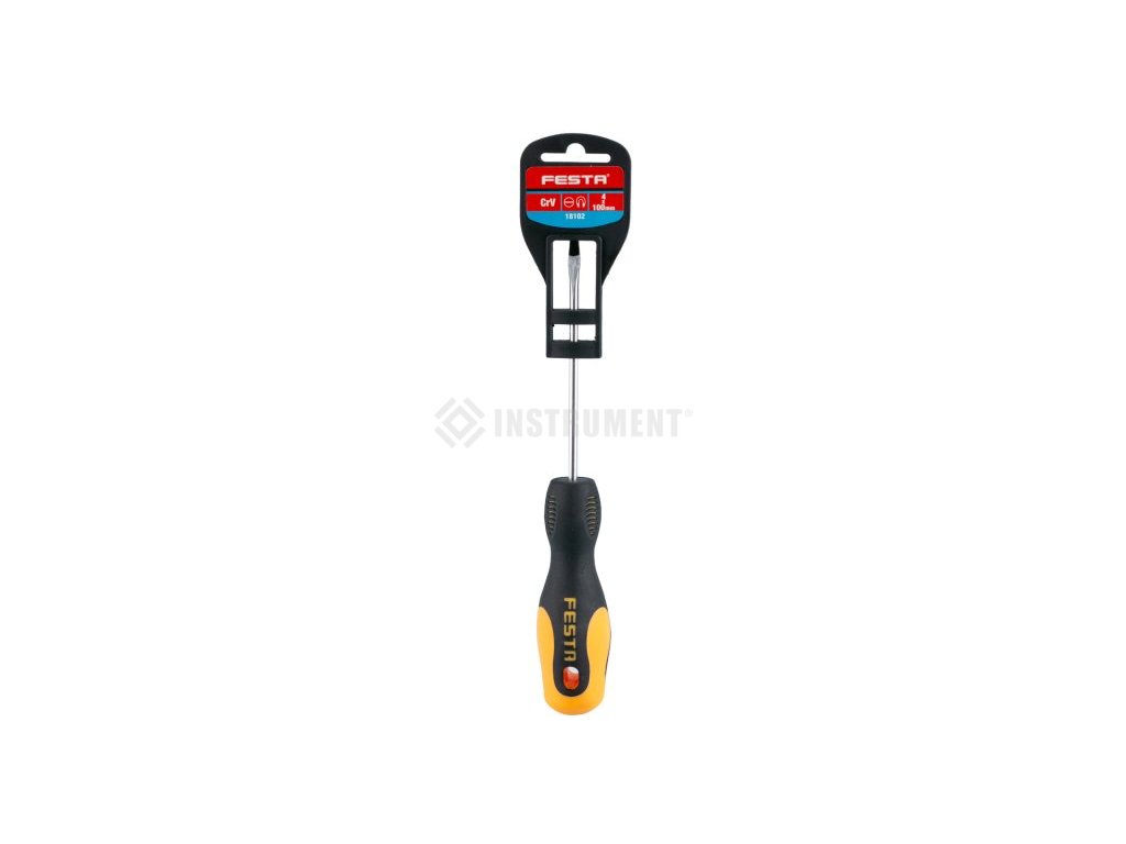 Kovový dřík šroubováku je vyroben z kvalitní chromvanadiové oceli, kalený hrot je magnetický, kombinace polypropylenu a pryže na rukojeti a její ergonomický tvar zaručuje dobré antiskluzové vlastnosti a dobrou odolnost vůči mazadlům a chemikáliím