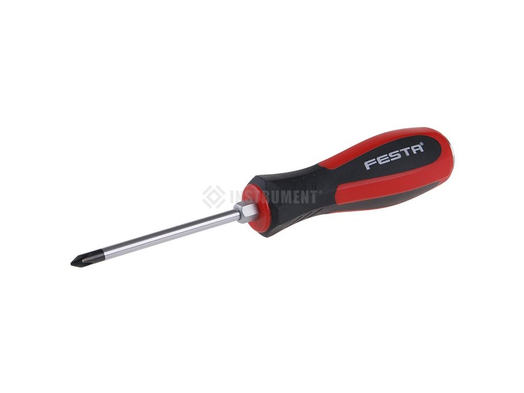 Kovový dřík šroubováku FESTA je vyroben z kvalitní chromvanadiové oceli, kalený hrot je magnetický, dřík šroubováku je pevně spojen s úderovou koncovkou, u rukojeti je šestihran pro použití klíče, kombinace polypropylenu a pryže na rukojeti a její ergonomický tvar zaručuje dobré antiskluzové vlastnosti a dobrou odolnost vůči mazadlům a chemikáliím