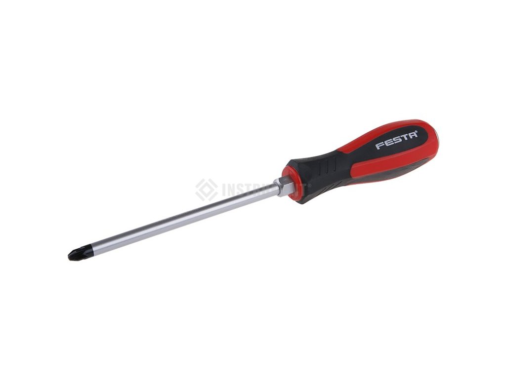 Kovový dřík šroubováku FESTA je vyroben z kvalitní chromvanadiové oceli, kalený hrot je magnetický, dřík šroubováku je pevně spojen s úderovou koncovkou, u rukojeti je šestihran pro použití klíče, kombinace polypropylenu a pryže na rukojeti a její ergonomický tvar zaručuje dobré antiskluzové vlastnosti a dobrou odolnost vůči mazadlům a chemikáliím