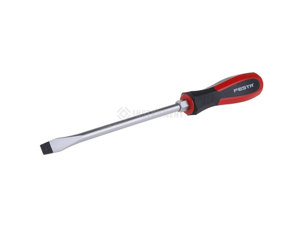 Kovový dřík šroubováku FESTA je vyroben z kvalitní chromvanadiové oceli, kalený hrot je magnetický, dřík šroubováku je pevně spojen s úderovou koncovkou, u rukojeti je šestihran pro použití klíče, kombinace polypropylenu a pryže na rukojeti a její ergonomický tvar zaručuje dobré antiskluzové vlastnosti a dobrou odolnost vůči mazadlům a chemikáliím