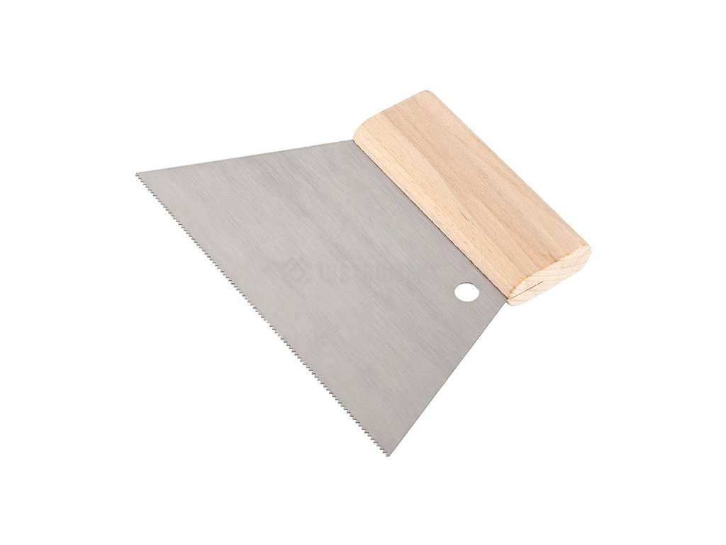 ocelová stěrka s dřevěnou rukojetí pro podlahová lepidla trojúhelníkový zub 1