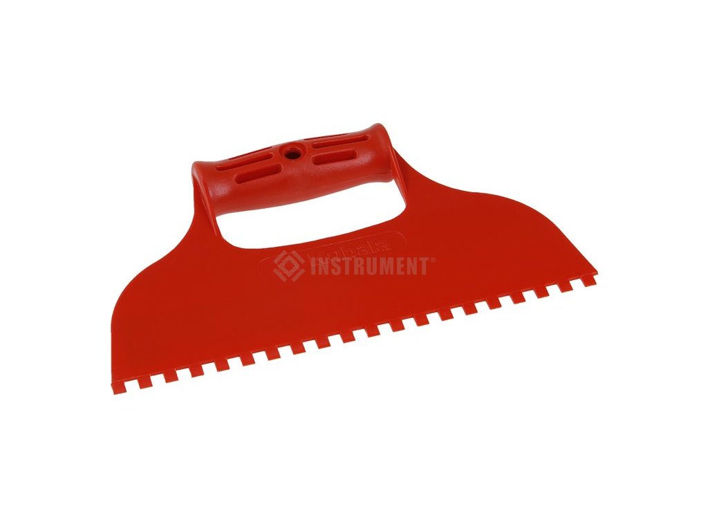 Stěrka plastová, rozměr : 235 mm zuby 6 x 6 mm, ergonomická rukojeť, kvalitní plast, použití : ve štukatérství, malířství, zednictví, je vhodná pro roztírání lepících malt, tam kde je potřeba zajistit souměrnou vrstvu lepidla - hmoty.