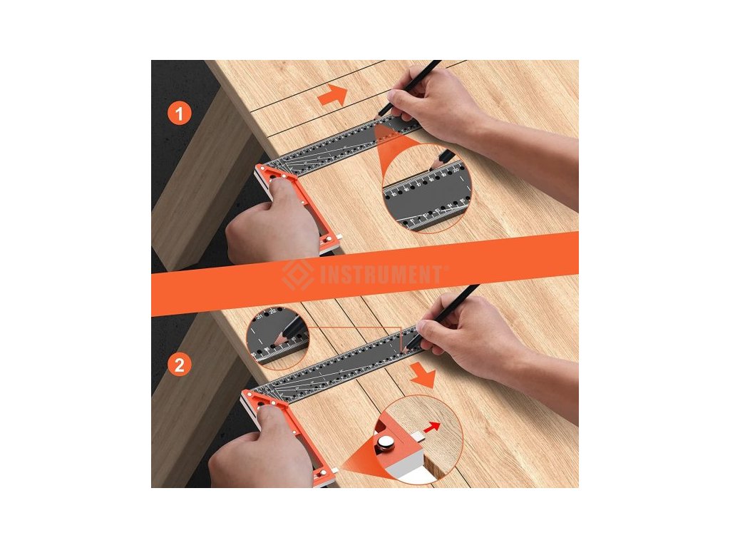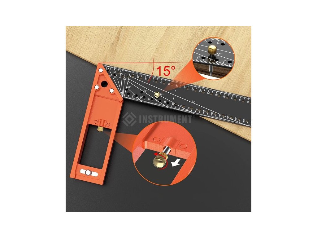 profesionální multifunkční truhlářský úhelník stupnice a speciální otvory - naznačené úhly pro široký rozsah použití, zaměření, značení a práce se dřevem, kovy, plasty apod