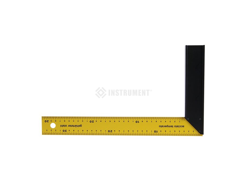 Truhlářský úhelník, kvalitní zpracování a materiály ( tvrzená pružinová ocel, opěrné rameno z černě eloxovaného hliníku), stupnice v mm, přesnost 0,5mm/m