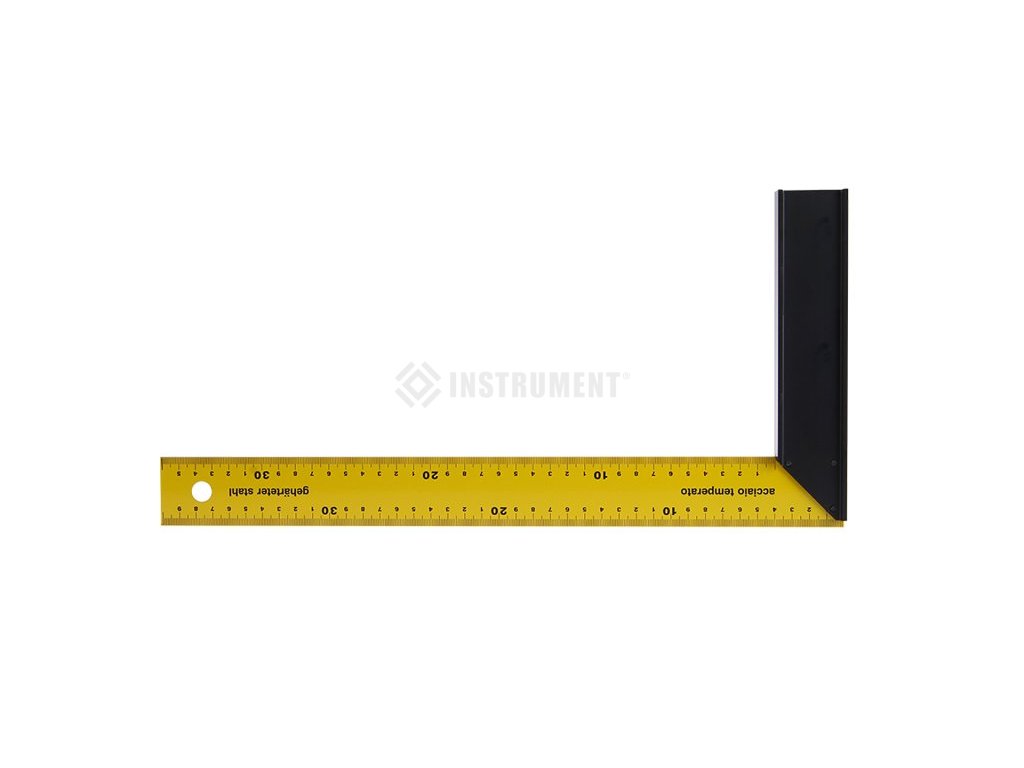 Truhlářský úhelník, kvalitní zpracování a materiály ( tvrzená pružinová ocel, opěrné rameno z černě eloxovaného hliníku), stupnice v mm, přesnost 0,5mm/m
