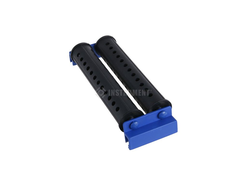 Dvojité plastové válečky s kolíky, které vniknou do otvorů v kbelíku a zamezí pohybu válečků po kbelíku odstranění přebytečné vody z hladítka.