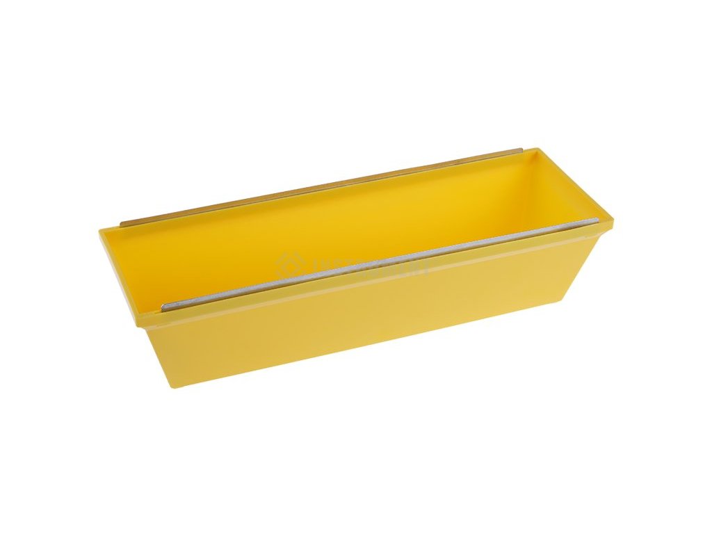 Vanička pro sádrokarton, materiál : odolný plast, kovová hrana pro práci při stěrkování a čištění špachtle nebo vymazávací lžíce, odolnost vůči změnám teploty, rozpouštědlovým hmotám