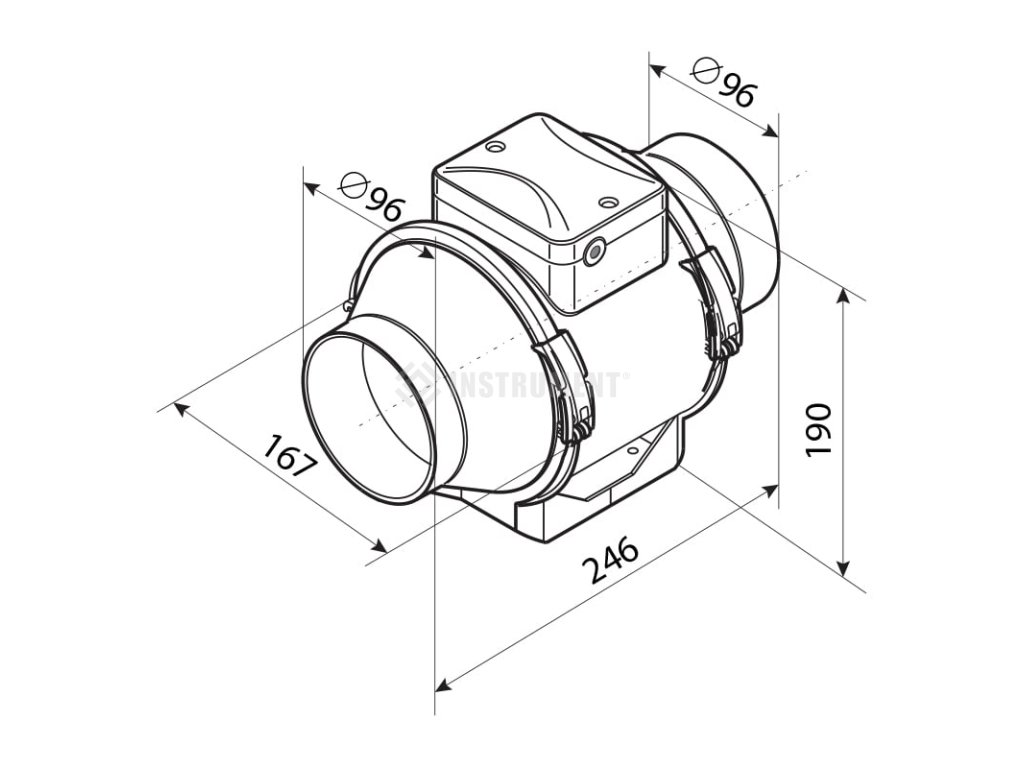 Ventilátor lze namontovat do kulatého potrubí v jakémkoli bodě a v jakékoli poloze. Kryt ventilátoru je vybaven držáky pro uchycení na stěnu nebo na strop.
