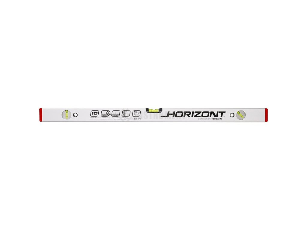 Horizont vodováha 2000mm se třemi libelami, přesnost 0,5mm/m = 0,0285°, eloxovaný otěruvzdorný povrch, tloušťka stěny ALU profilu 1,5mm, kapalina v libelách je UV stabilizovaná a fluorescenční, horizontální optická vodováha je odolná proti provozním nárazům, 10 let záruka na libely, KAŽDÝ KUS elektronicky testován.