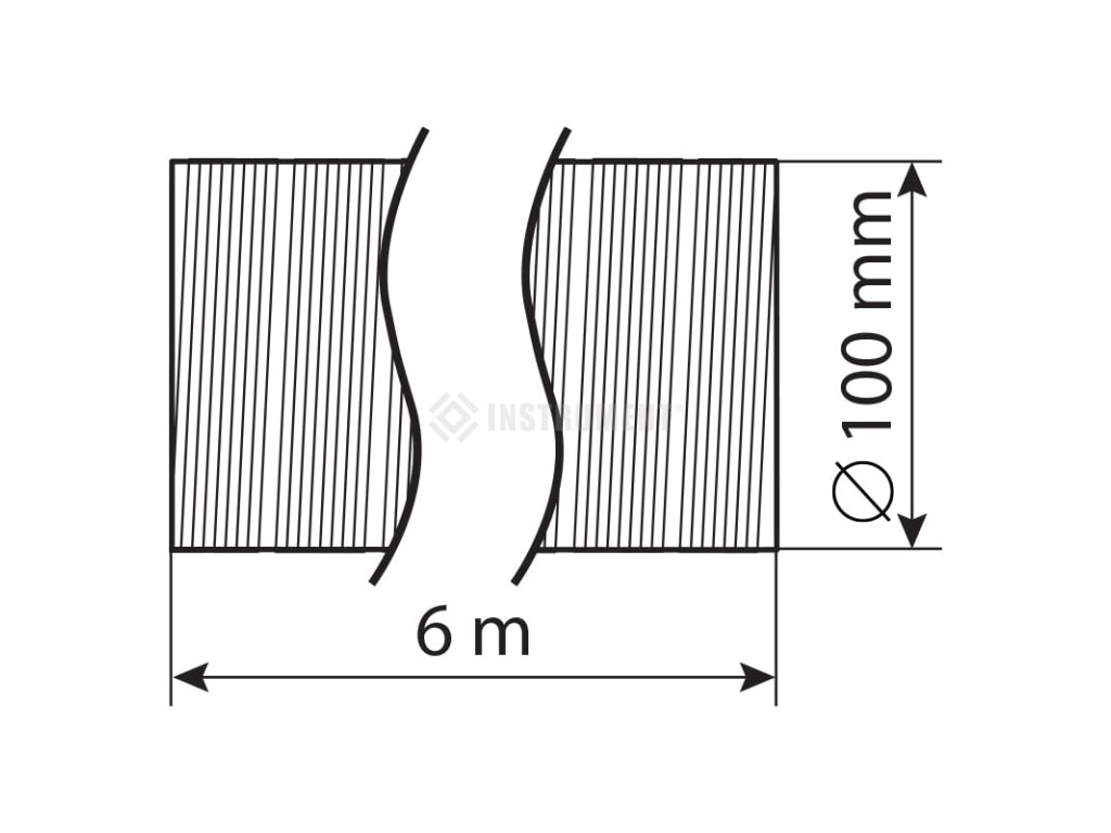 Ohebné hliníkové potrubí, tloušťka stěny 100 μm. t:-30÷250°C, průměr 100mm, délka v roztaženém stavu 6m.