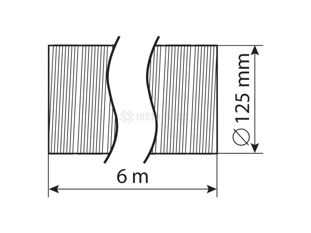Ohebné hliníkové potrubí, tloušťka stěny 50 μm. t:-30÷250°C, průměr 125mm, délka v roztaženém stavu 6m.