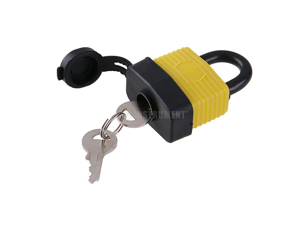 40mm ocelové tělo potaženo plastem pro maximální odolnost proti vodě a vlhkosti. Oblouk tvrzené oceli potažený plastem pro lepší odolnosti proti prořezání Váha: 140g 2 ocelové klíče.