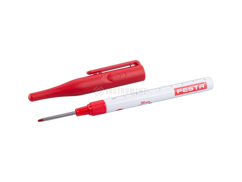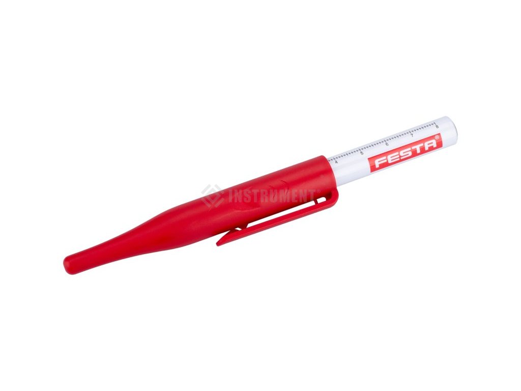 permanentní hloubkový značkovač - červený průměru hrotu jen 3 mm, umožňuje značení malých průměrů skrz až 30 mm silných materiálech použitelný na většinu povrchů