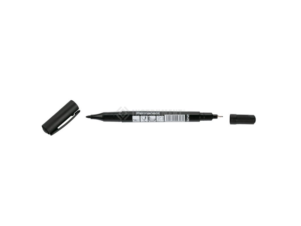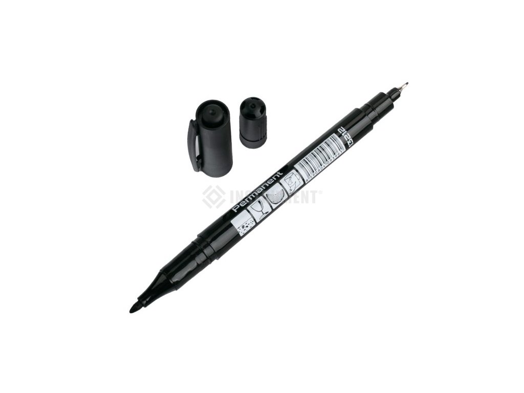 značkovač - fix permanentní, oboustranné provedení - černý tenký hrot 0,5 mm a jemný hrot v jednom pro rýsovací i popisovací použití