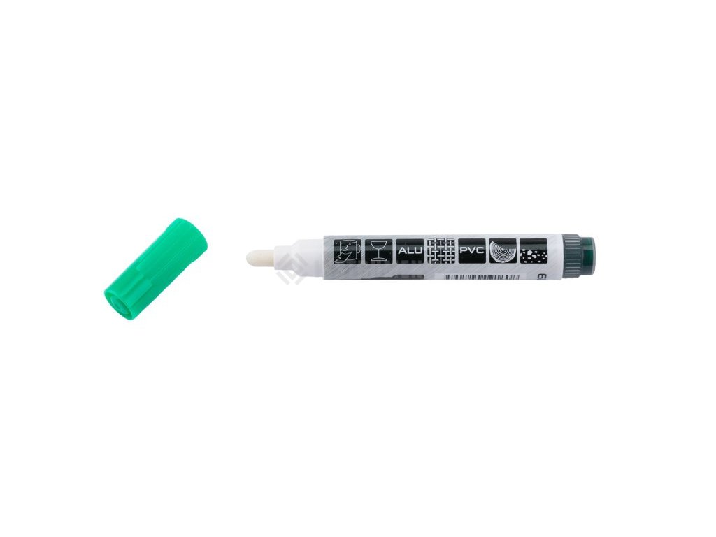 speciální permanentní značkovač - fix s tlustým hrotem 4 - 6,5 mm k probarvení hrotu je potřeba značkovač protřepat - kuličky uvnitř promísí barvu a stiskem hrotu dovnitř dojde k nasátí barvy a značkovač - fix je připraven k použití vhodný pro popisy železných konstrukcí, skla, plastů, černých strečových folií atd